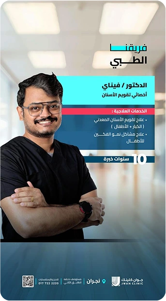 هو مركز متخصص في تقديم خدمات طب الأسنان المتكاملة في نجران، يجمع بين أحدث التقنيات الطبية وفريق طبي مؤهل لتقديم أفضل العلاجات الوقائية والتجميلية. يهدف المركز لتوفير رعاية صحية شاملة للأسنان، وتلبية احتياجات المجتمع بجودة وخدمة متميزة لتحقيق ابتسامات مثالية لجميع أفراد الأسرة.
